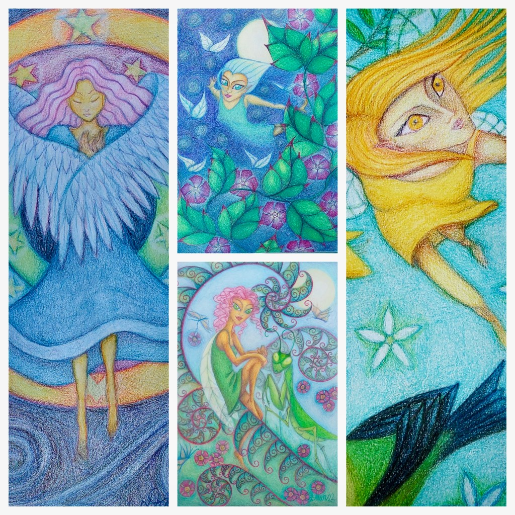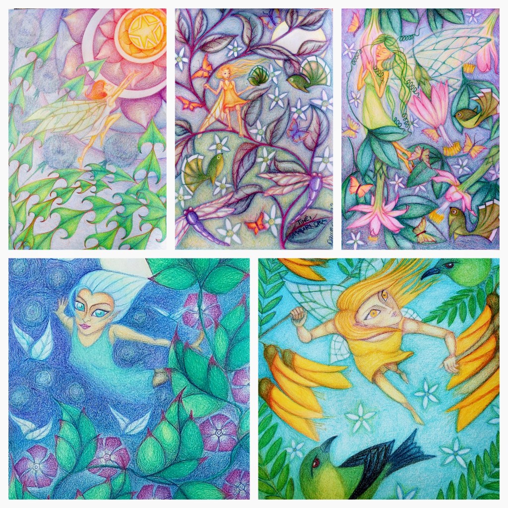 In a lightening fast year of life happening the only thing I managed to do consistently was draw. When all else fails pick up your pencils. Colour therapy and imagination at play ensue. A year of being away with the fairies.