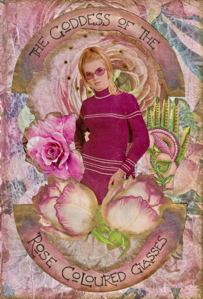 The Goddess of the Rose Coloured Glasses, 2021, mixed media on paper, 20 x 30cm