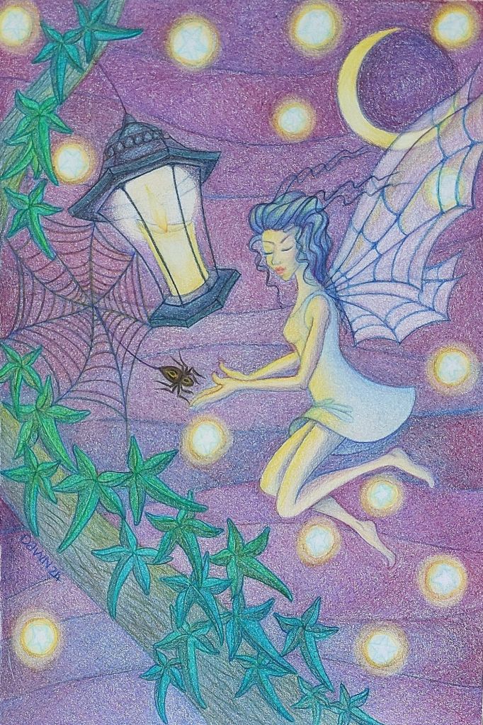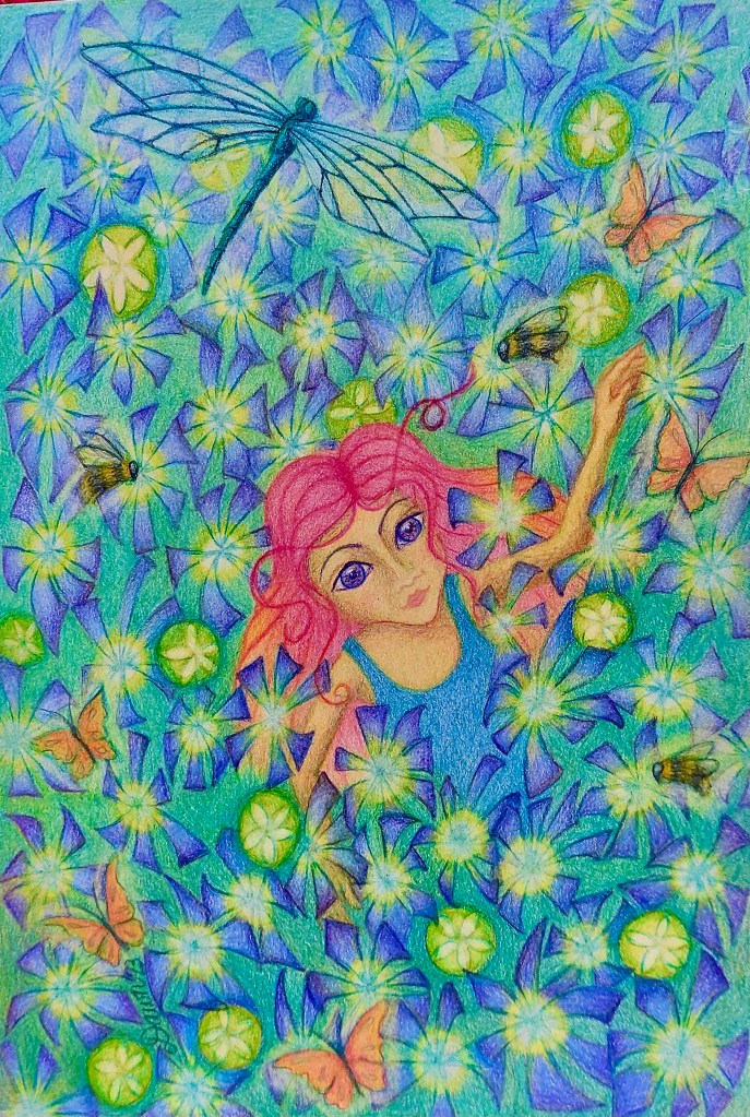 Drawings take anywhere from a couple of days to a few weeks to complete depending on various factors. I generally work on them in the evenings when I have time to sit without feeling too pressured by other responsibilities and distractions. That’s when I have time to run away in my imagination and play with the fairies.
