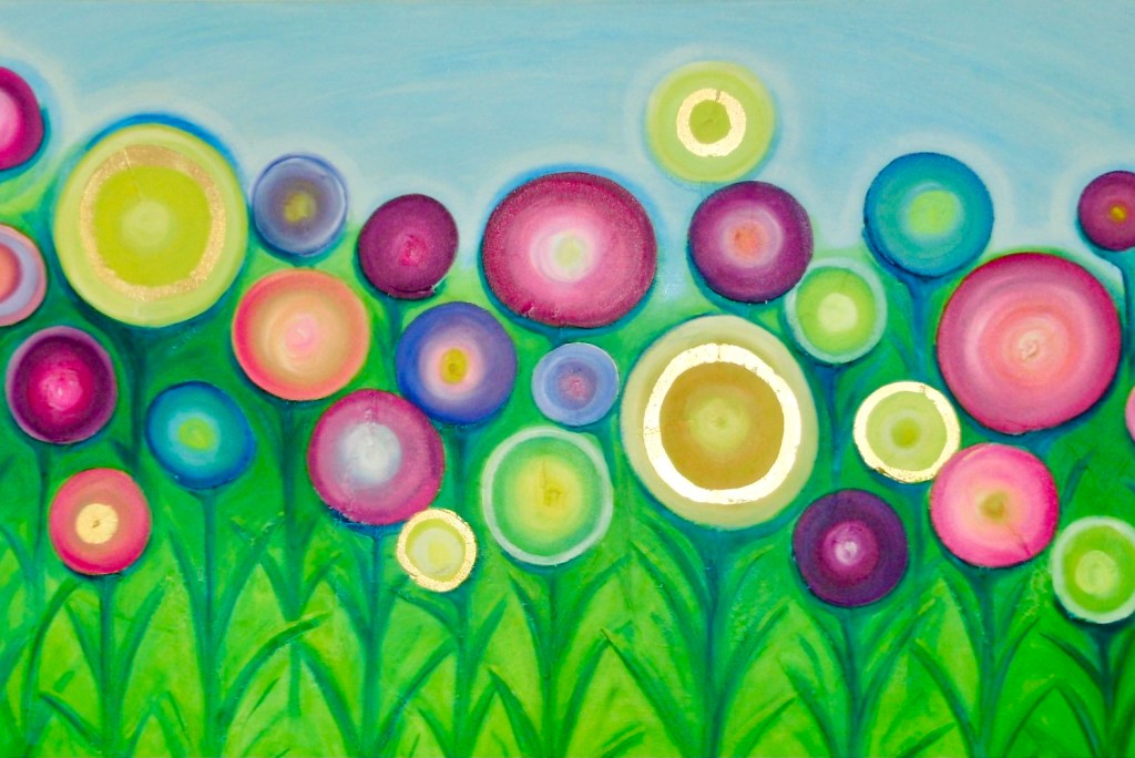 Field of flowers, 2012, acrylic on canvas with gold leaf, 1.5 x 1 m