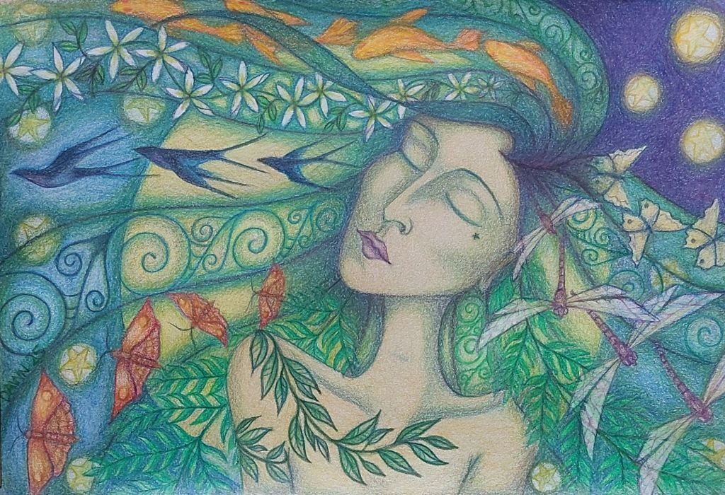 Gaia Dreaming, November 2025, 20cm x 30cm, Faber Castell, Albrecht Durer coloured pencil on hot pressed paper.