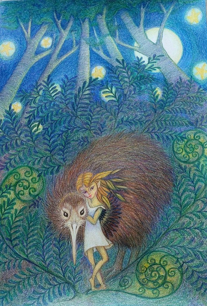 Kiwi and Bracken Fairy, 2026, Faber Castell Albrecht Durer pencil on paper, 20cm x 30cm
